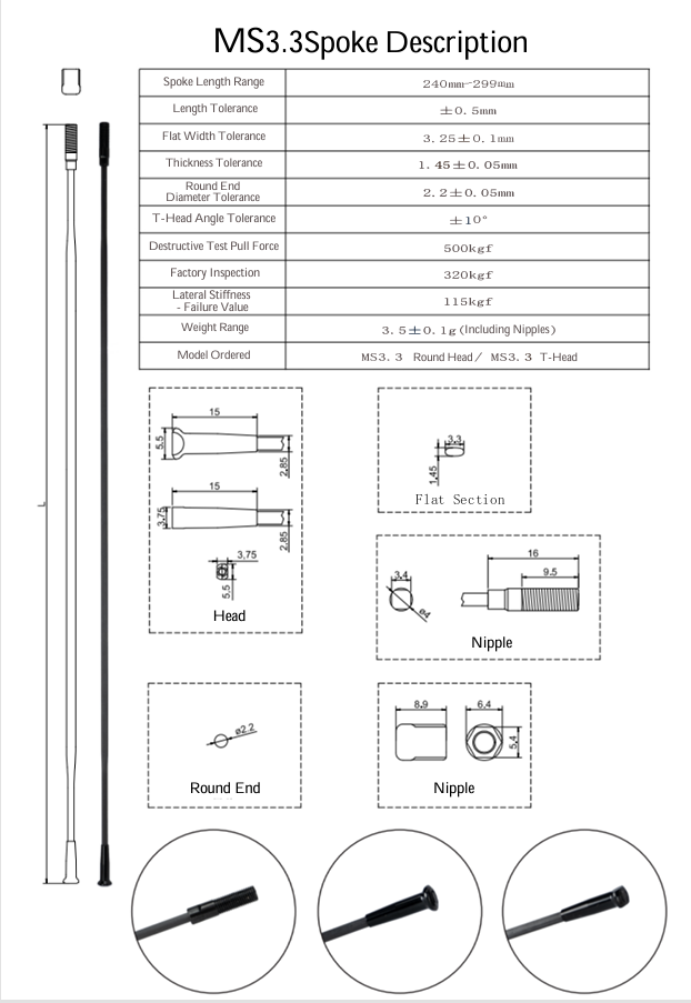 Super light weight carbon spoke,Exclusive patented technology, weighsmerely 3.5g/pc,Breaking Strength reach to 500 kgf,the most stable structure, round head and T head optional, 2-year warranty